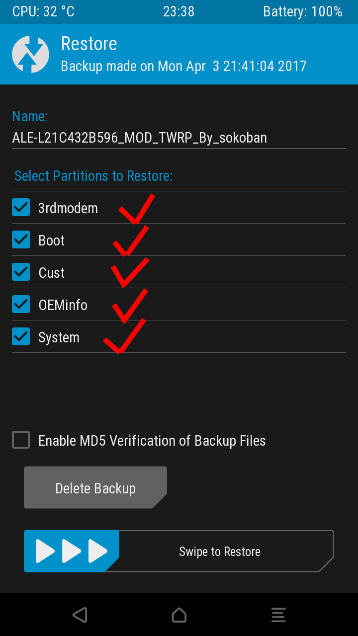 Buenas @Dylaan. Que tal? La versión del TWRP es 3.0.2. Es la correcta. Y cuando he recuperado la copia de seguridad si me salían todas las opciones. Supongo que se un error en la descarga.