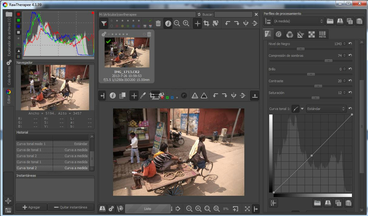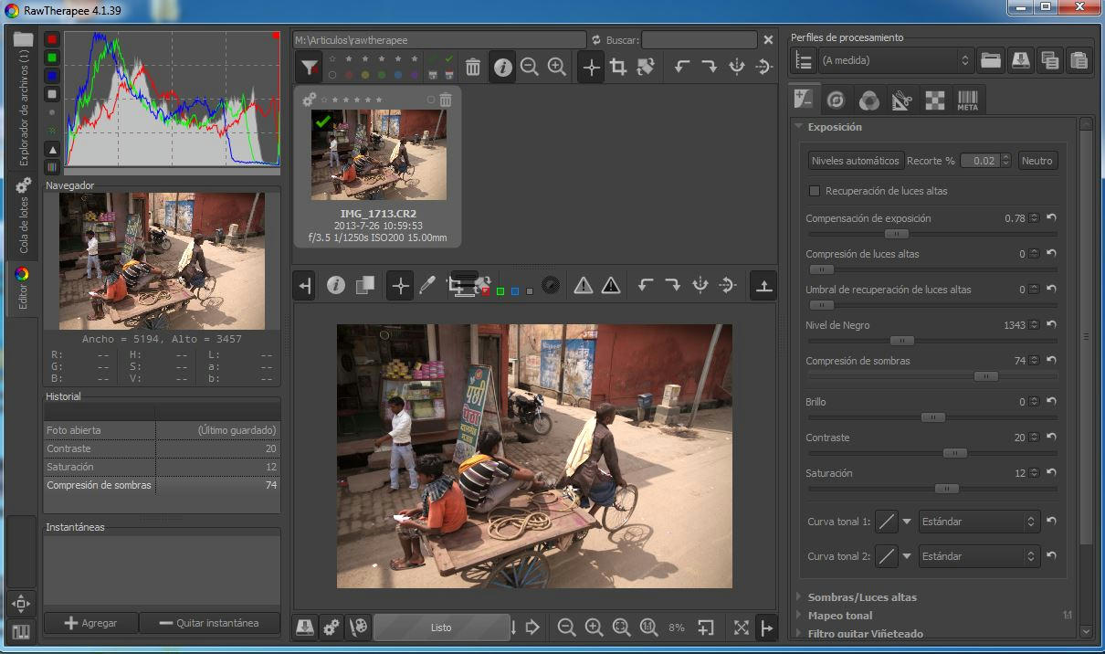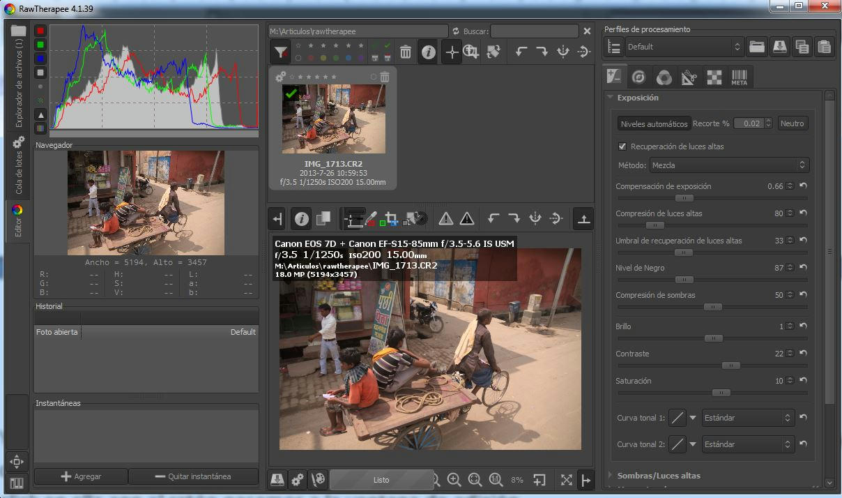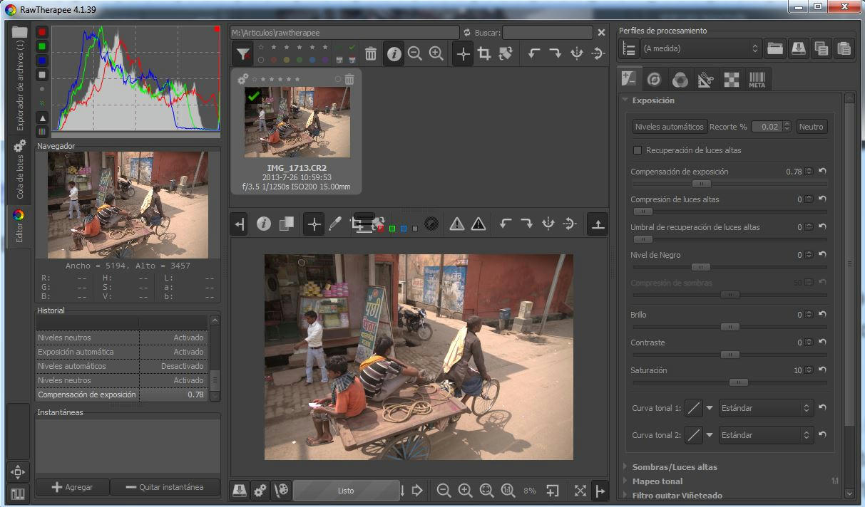 Aquí un ejemplo práctico ilustrado Prosesando un RAW con RawTherapee