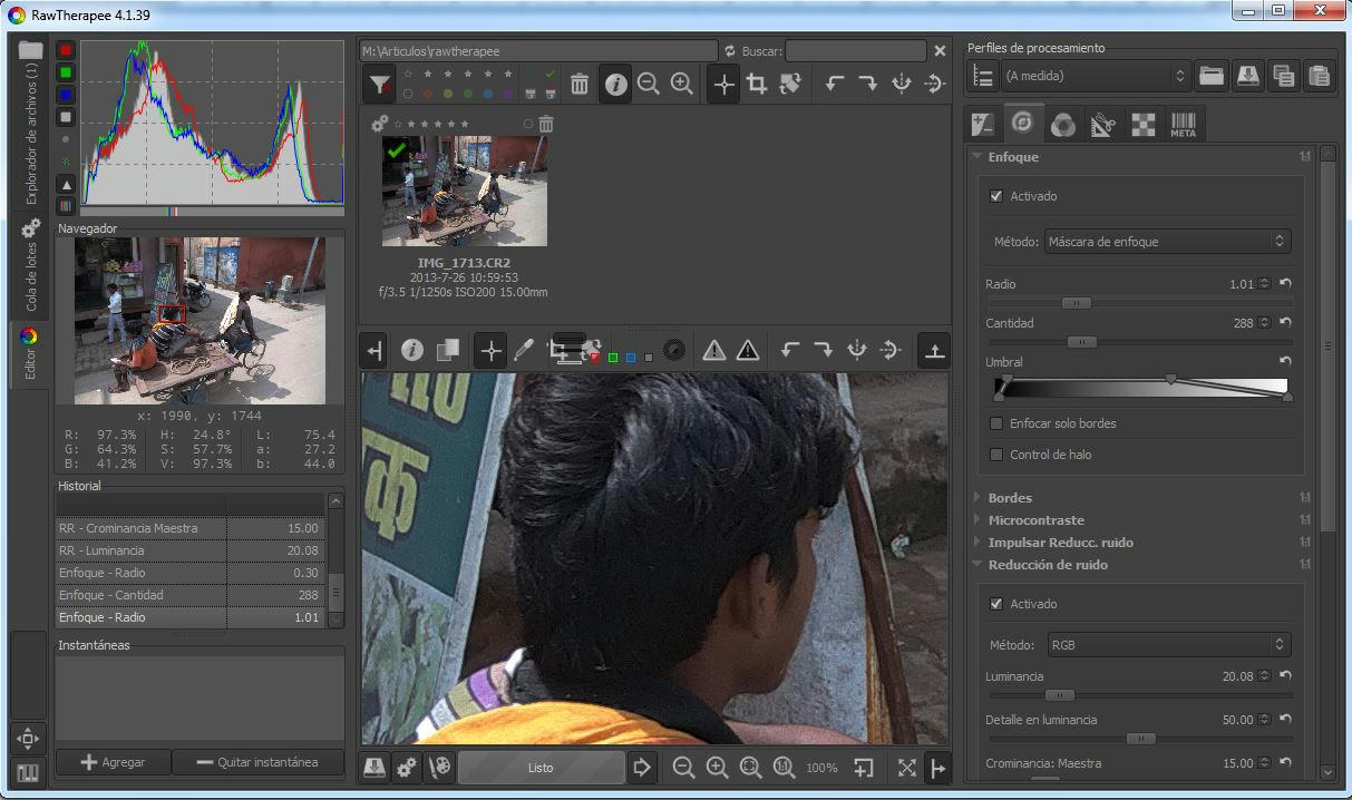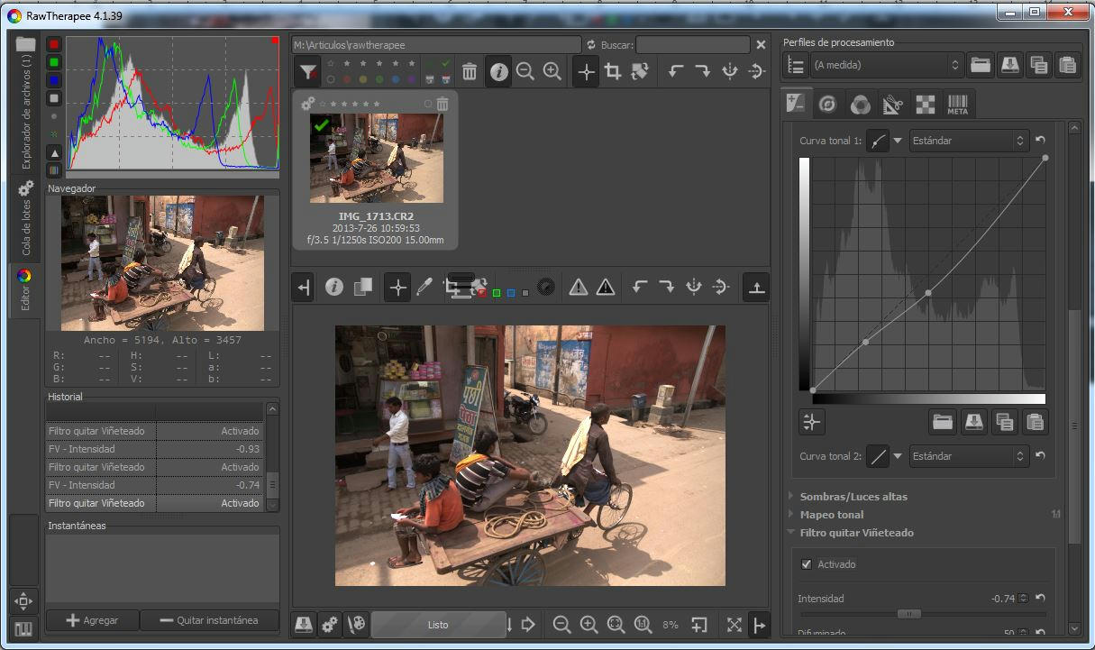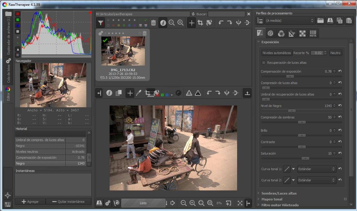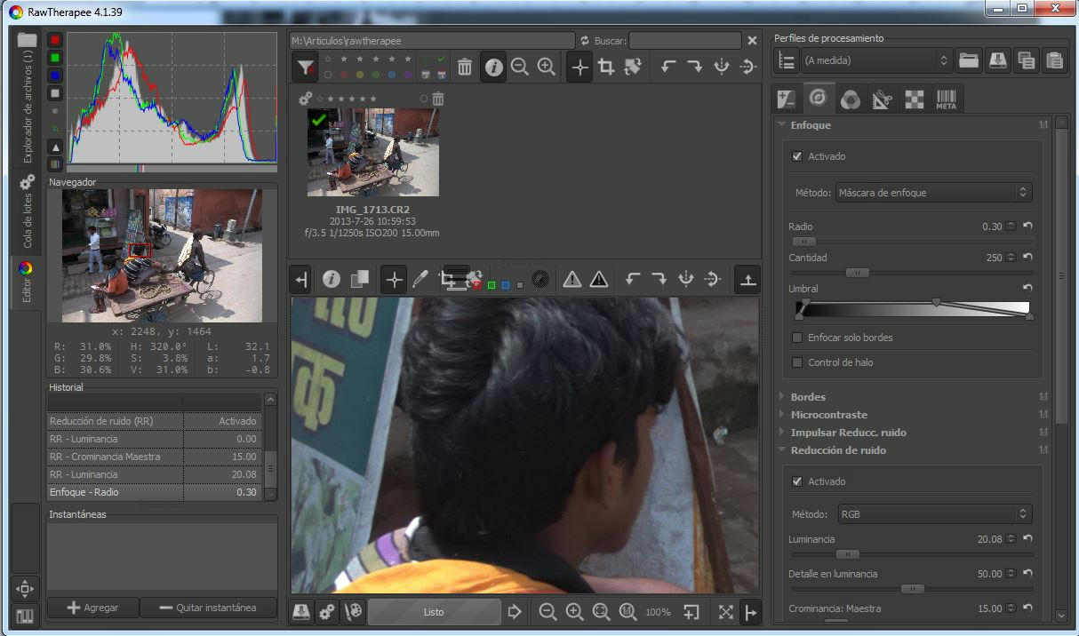 Aquí un ejemplo práctico ilustrado Prosesando un RAW con RawTherapee