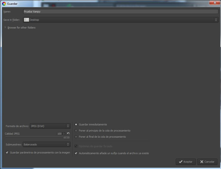 Donde está la flecha y se abre esta ventana, donde se ajusta donde queréis guardarlo y la calidad del jpg (en este caso)
