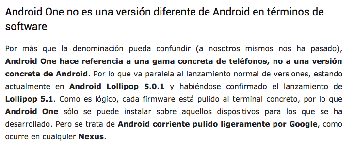 Resumen: Android One = programa de google para llevar teléfonos con android stock a países emergentes. Este android no puede ser modificado por una capa del fabricante (xiaomi solo mete un par de apps como la camara).