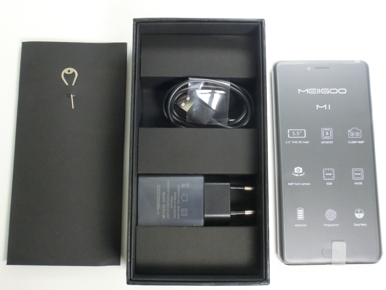 Espero que este artículo resulte interesante e informativo para quien busque información de este terminal. Presentación del productoPresentación del paquete recibidoLa caja es de color negro, muy elegante, con el logotipo de Meigoo en el centro de su cara superior, y el modelo M1 en la parte inferior de la misma cara En la cara posterior tenemos un resumen de las características mas destacable del dispositivo. En el interior tenemos los elementos perfectamente distribuídos para que no estén sueltos dentro de la caja. Contenido del paqueteUnboxing y descripción del contenido del paquete recibidoUna vez abierto el paquete nos encontramos con los siguientes elementos, que entiendo corresponden al contenido standard para este producto.