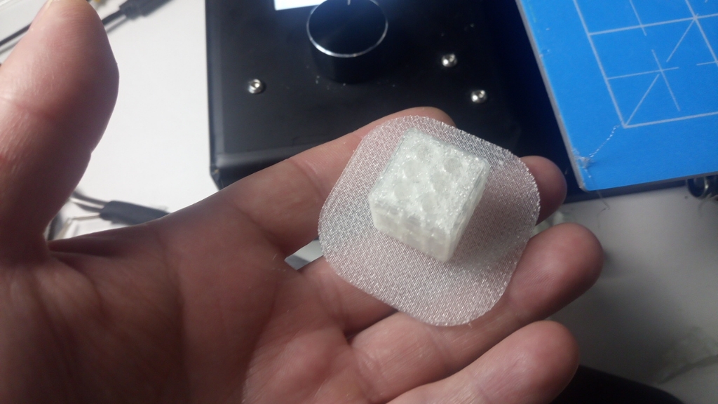 Interfaz (pantalla LCD) El dispositivo cuenta con una pantalla LCD y un monomando de giro con pulsador. A continuación dejo las pantallas principales que nos encontraremos: Pantalla informativa principal, con el estado de la temperatura del extrusor, de la cama, velocidad del ventilador y progreso de la impresión Menú principal Submenú "Prepare" Interfaz que aparece cuando seleccionamos "Bed Auto Leveling" Interfaz del menú "Move Axis" Submenú Control Auto calibrado de la camaLa impresora viene con una utilidad (Script) que nos ayuda a calibrar la cama, pero este script tiene una particularidad, y es que realiza el calibrado en 4 puntos, cuando la cama posee sólo 3 para sostener la cama, por lo que el proceso de nivelado se hace algo pesado y poco intuitivo. Para solucionar esto, sugiero utilizar el siguiente script de calibrado que encontraremos en thingiverse: https://www.thingiverse.com/thing:2479290 Este script calibra la cama de la Ender-2 en los 3 puntos que tiene de soporte, y lo realiza 2 veces. Por cada punto, pasaremos un folio entre la cama y el extrusor, y el folio debe pasar con un poco de "rascado" por parte del extrusor, pero sin que se bloquee. Una vez que hayamos calibrado los 3 puntos de la primera vuelta, verificaremos que está todo correcto en la segunda vuelta [video]http://www.youtube.com/watch?v=DI-yhPi53mQ[/video] Finalizado el calibrado, la impresora generará un cuadro para verificar que todo está correctamente configurado y calibrado. Para verificar que la impresora está correctamente calibrada en los saltos X, Y, Z, esto es, que las dimensiones en estos 3 ejes sean las correctas, vamos a imprimir un cubo de calibrado. En mi caso, y como he estado realizando varias pruebas, sugiero utilizar el siguiente cubo, que además sirve como Dado para que los niños puedan jugar con el. Lo cierto es que luego de imprimir el cubo de calibrado, utilizando HIPS como material, no me ha dejado con una sensación de impresión correcta, ya que estos días ha hecho mucho frío y por tanto la calidad de la impresión no ha sido uniforme, por lo que he esperado a que me llegase una bobina de filamento PLA y he vuelto a realizar la impresión, esta vez con una base RAFT (balsa), para no tener que romper la primera capa por accidente cuando saco la pieza impresa de la cama, y así poder medir correctamente. Tal cual como se muestra en esta imagen, el cubo impreso tiene las siguientes relaciones y que son las que debo medir para verificar el calibrado: Cara 2 (6 arriba) Horizontal: Eje X Cara 4 (6 Arriba) Vertical: Eje Z Cara 6 (Paralelo a cara 2): Eje Y Cubo con la balsa de impresión. Cubo sin la balsa (Raft) En general, la impresora se encuentra bien calibrada. Es importante el calibrado puesto que si no lo está, corremos el riesgo de imprimir piezas que deban encajar unas con otras, pero por la diferencia de tamaños en alguno de los ejes, terminen no encajando correctamente. Ejemplos de impresionesLuego de sufrir un retraso con el filamento que había pedido para imprimir, y por el cual he demorado en publicar esta review, finalmente he sacado algunas cosas para mostrar lo que puede hacer esta impresora. En esta ocasión, he decidido imprimir varios objetos de uso práctico para mi, en su mayoría piezas de un sistema de montaje articulado para cámara/smartphone, además de haber creado algunas otras piezas con la ayuda de Sketchup. Maker Faire Robot Action Figure https://www.thingiverse.com/thing:331035 La complejidad de estos robots es que la impresora los debe imprimir directamente en la cama, ya montados (es un solo modelo), pero por la característica en la que ha sido diseñado, una vez que se sacan de la cama y con movimientos suaves seremos capaces de soltar las articulaciones "internas" y, por tanto, tener brazos, piernas, rodillas y cabeza totalmente articulados e impresos de una vez, sin necesidad de ensamblar. Nota: en la zona derecha de la impresión de los robots, tenía un intento de creación de un Mokujin (del juego Tekken), pero debido a la reducción del tamaño original, las piezas no han sido creadas correctamente y por tanto no pude armar dicha figura. Modular Mounting System Uno de los proyectos que mas me ha llamado la atención en Thingiverse, es este sistema modular para montar cámaras (Modular Mounting system) Usos prácticosUna de las primeras implementaciones que he hecho, es reparar un botón de la consola GPD-Win que perdí (estaba suelto y debido a algún roce, se salió de su lugar) Para eso, me he apoyado en el programa Sketchup para diseñar la pieza que me falta, y con un poco de prueba y error, conseguí una pieza con el tamaño y diseño correctos para volver a tener mi consola funcional. Evidentemente, es un primer intento. El botón funciona y encaja sin problemas en la estructura, pero me ha quedado demasiado grande, por lo que sobresale mucho de la consola. Ya es cuestión de modificar e imprimir hasta dar con uno de tamaño ideal. Y con este botón he estado utilizando la consola. Cierto es que no tengo muelle interno, como el resto de botones, pero solo con el pulsador ya tengo movimiento suficiente para utilizar el botón sin problemas. Aprovechando que ya tenía la base del botón, he diseñado una variante del mismo para incluír en la consola y mejorar la experiencia de la misma. En esta ocasión, he querido diseñar botones L1&R1 y los L2&R2 de forma que queden en la misma posición que en un mando clásico, esto es, los L1&R1 encima de los L2&R2 De momento, solo he desarrollado un prototipo de los L1 y R1, pero espero poder dedicarme a ellos y terminar con la customización de la consola (y que pretendo compartir cuando estén terminadas) Como en todo producto, nos encontramos frente a un disopsitivo que tiene sus puntos a destacar de forma positiva, también nos encontramos con aquellos puntos o características que, o no cumplen correctamente con lo que se les pide, o simplemente no incorporan una funcionalidad qu