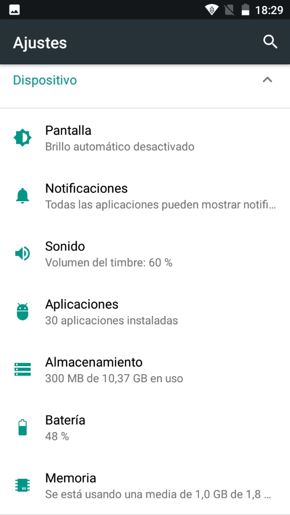 Con estas dos particularidades, sumado al rango de precio, tenemos un producto que a priori resulta interesante como alternativa de móvil de uso diario para quien no quiera dejarse mucho dinero en un terminal. El detalle de la funda de silicona me gusta mucho, por que es un accesorio casi indispensable hoy en día para agregar algo de seguridad ante pequeños golpes del dispositivo, y que no le queden marcas de uso en la parte trasera. La pantalla tiene se ve muy bien en términos generales. Nunca comento temas técnicos sobre este apartado, por que no tengo ni herramientas ni el conocimiento para poder comparar objetivamente una pantalla con otra, y todo lo que pueda comentar con respecto a la saturación de color, brillo, nitidez, etc, es una valoración subjetiva y que perfectamente puede diferir de la opinión de otra persona, pero en términos generales, me gusta la pantalla del dispositivo. No veo tonos azulados al inclinarla, y con luz solar se ve (aunque evidentemente pierde mucho si utilizamos el dispositivo al aire libre directamente bajo la luz solar) La pantalla trae un protector instalado de fábrica, lo que también agradezco mucho. No me gustan nada los móviles que, dentro del paquete de accesorios incluyen un protector para que lo pueda poner el propio usuario. Tanto a mí como a la mayoría de las personas, estoy seguro que tenemos el mismo problema a la hora de instalar uno de estos protectores, y es que nos quedan burbujas, o no nos queda centrado, etc. El altavoz se encuentra en la parte de abajo del móvil, en un lateral (canto) cuando está en una mesa, lo que permite que se escuche bien y no se ve obstruida la salida por la propia superficie donde hemos puesto el terminal. También es de mis preferencias que los botones de interacción del sistema (BACK, HOME, MENU) sean físicos, y que no estén incluídos como botones virtuales en el propio dispositivo. En este caso, no son botones retroiluminados, pero con aprender la posición de cada uno de ellos, y la interfaz de uso se hace mucho mas cómoda en mi opinión, que la interfaz de botones virtuales. Ejemplos fotografías y vídeoMuestra de la calidad obtenida con el dispositivoA continuación pondré algunos ejemplos obtenidos con la/las cámara/s del dispositivo, y haré comentarios cuando crea necesario. Hay que tomar en cuenta que las fotografías las he subido a un servidor de imágenes y que por tanto pueden tener algún tipo de compresión, pero que asumo que para un ejemplo general de calidad es suficiente. Para vídeo, los subo a Youtube y pueden tener también algún tipo de tratamiento de la imagen/compresión, pero que al igual que las fotos, nos servirá para hacernos una idea general de la calidad obtenida por el dispositivo. Fotos interior Fotos exterior Modo HDR activado Efecto Bokeh Nota: La aplicación de la cámara que incluye el dispositivo no cuenta con un modo panorámico, por lo que si se desea obtener fotos panorámicas, hay que instalar desde la playstore alguna aplicación que permita hacerlas. En esta sección pondré la información disponible de forma pública sobre el producto, y que puede ser obtenida desde la página oficial del fabricante, del vendedor, o incluso en el propio embalaje del producto.