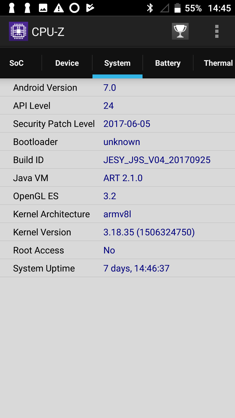 * No me ha sido posible obtener información sobre el governor, pero asumo que será como en la mayoría de dispositivos, que emplean el governor Interactive para ahorrar batería cuando no está en uso intensivo la CPU. Para el caso de dispositivos Android, en el caso de ejecutar con un firmware stock, por norma limpio el dispositivo, quitando todo el software pre-cargado innecesario de la máquina para, a continuación, realizar el benchmark. Por el contrario, si utilizo un custom firmware, por lo general estos firmwares vienen optimizados y no hay necesidad de tocar la configuración para obtener una ejecución limpia de los benchmarks. Antutu Benchmark System InfoAl igual que sucede con los ordenadores de sobremesa, una de las formas mas comunes de mostrar el rendimiento y desempeño de un dispositivo es ejecutando juegos en él, tanto juegos nativos del sistema operativo del dispositivo (Android, Windows, etc), como juegos de otros sistemas (roms) utilizando emuladores. A continuación muestro una serie de vídeos con distintos juegos y emuladores en acción en el dispositivo, y si es necesario, algún comentario con lo mas destacable o con información extra sobre el tema. Juegos Nativos AndroidEn general, los juegos android están pensados para dispositivos con pantallas táctiles y controles de sensores como inclinación, y en la gran mayoría se presentan controles en pantalla para poder interactuar con ellos, pero poco a poco van saliendo mas juegos con soporte nativo para Joysticks compatibles con Android. En la actualidad, existen algunas alternativas para poder dar soporte de joystick (o controles físicos en general) a los juegos que no tengan este tipo de soporte, y que en su mayor parte se basan en la emulación de los eventos que sí tienen soporte, que generalmente corresponde con la emulación de toques táctiles en pantalla, para poder interactuar con los controles virtuales que ponen a disposición la mayoría de los juegos en Android. Existe un conjunto de juegos que tienen características especiales, y que no se pueden ejecutar normalmente en cualquier dispositivo (o incluso, no se pueden ejecutar si no es un dispositivo específico). Una de las características es el uso de gamepads específicos para habilitar el soporte de controles en el propio juego. Uno de los mandos mas "compatibles" en android es el Moga Pro, pero en algunos dispositivos no tiene sentido utilizar un mando de este tipo (ya sea por que no tienen bluetooth, o por que el propio dispositivo cuenta con controles incorporados, como pueden ser las consolas android), por lo que en estos casos utilizo la aplicación MCHelper que me permite "emular" un mando Moga, utilizando los propios controles de la consola (o el gamepad que tenga). A continuación, dejo algunos ejemplos de juegos nativos corriendo en el dispositivo. Nota: Las siguientes capturas se han realizado utilizando una herramienta de captura de vídeo, ejecutada en el propio dispositivo. En general, la ejecución de estos juegos en el dispositivo van mucho mas fluídos que lo que se muestra en las capturas, pero he preferido mostrar como se ven estos juegos directamente capturando en pantalla. Stormborne [video]http://www.youtube.com/watch?v=tfNfeI2pDQM[/video] Warhammer 40000: Freeblade [video]http://www.youtube.com/watch?v=fvcZfrkhIVU[/video] World of Tanks [video]http://www.youtube.com/watch?v=BnRm-wfw3zI[/video] N.O.V.A. Legacy [video]http://www.youtube.com/watch?v=f67xA5yfgd8[/video] Ire [video]http://www.youtube.com/watch?v=1qamAlnfIRE[/video] Injustice 2 [video]http://www.youtube.com/watch?v=CDnuCcfTAL8[/video] Implosion [video]http://www.youtube.com/watch?v=cNObeKo3JrY[/video] Bullet Force [video]http://www.youtube.com/watch?v=Y0volox1a14[/video] Acerca del puerto de Infrarojos (IR)El dispositivo viene con un puerto infrarojos en la parte superior. Este puerto, junto con una herramienta adecuada, puede tener muchas utilidades. Con el dispositivo viene el programa ZaZaRemote, con el cual podemos transformar el teléfono en distintos mandos para los dispositivos que tengamos en casa. La forma de trabajar es bastante simple. Agregamos un nuevo mando, informamos a la aplicación sobre datos básicos del mando (tipo de aparato como TV, reproductor DVD, etc), luego indicamos la marca y luego el programa se queda en un modo de prueba, a la espera de que indiquemos cuando reacciona nuestro dispositivo. Alternativamente, se puede realizar una búsqueda por un modelo específico, pero en mi caso no he encontrado el mando específico de mi TV (que es con la que estuve probando) El puerto IR no permite "aprender" otros mandos, para lo cual necesitaremos un accesorio extra de ZaZaRemote. Dejo a continuación un vídeo donde he realizado un ejemplo de configuración de mando, para hacer la idea de como trabaja. En general, resulta sencillo configurar nuevos mandos con esta aplicación y el puerto IR cumple correctamente la funcionalidad esperada, eso sí, tiene un rango de amplitud limitado, por lo que siempre tenemos que apuntar hacia el dispositivo. Nota: En el video, aparece que el código que busqué al principio no funciona. Realmente funciona, pero no estaba apuntando hacia el receptor IR del televisor, y por eso parece que no hacía nada. Acerca del uso de la bateríaEsta sección de la review generalmente la escribo varios días después de haber comenzado a escribirla, y es que para poder hablar de la batería es necesario un uso del dispositivo por algunos días, para poder tener una experiencia mas realista y que no esté basada en los datos proporcionados por el fabricante. Como hasta ahora me ha resultado un poco complicado emitir una opinión que no se base en una apreciación subjetiva del uso, en mis últimos artículos he decidido ejecutar un test de batería que viene con el programa PCMark. Este test consiste en ejecutar de forma continuada un benchmark, para mantener ocupado el procesador, y con la pantalla encendida, y se cu