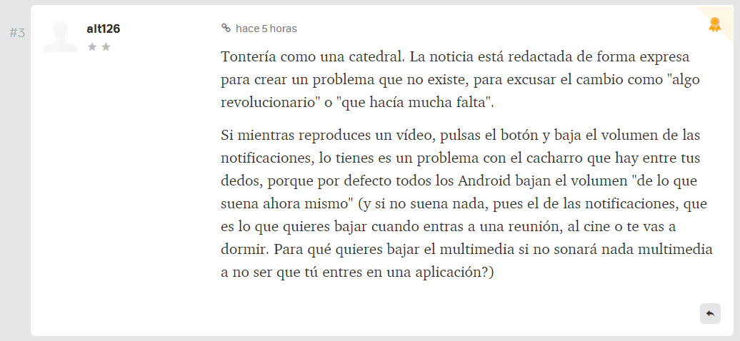 Lo que me parece absurdo es que el Android Stock no esté diferenciado el volumen de llamadas del de notificaciones, cuando bastantes fabricantes sí que lo tienen. Para mí, en muchos momentos, es necesario silenciar el volumen en notificiaciones y no en llamadas.