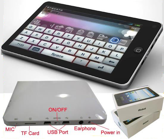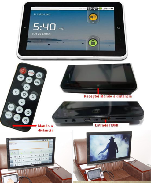 Todas están nuevas y se venden con su factura y garantía de dos años. Tablet PC PPC7003 PRECIO 105 € Pantalla tactil 7” Resolucion 800*480 WVGA Web Cam Procesador: VIA 8505 600mHz Sistema operativo Google Android Memoria Ram: 256 MB, ROM: 2GB WIFI 802.11b/g, Puerto USB 2.0 Medidas 203mm * 137mm* 13mm Duracion de la batería 2.5 horas Micro / Altavoces estereo Ranura tarjeta SD / MMC Puerto USB 2.0 Soporta: mp3. wma. wav. wmv. asf. avi. mpg. mpeg. mp2. mp4. mov ![]() -------------------------------- Tablet PC PPC7006 PRECIO 139€ Pantalla 7" tactil Resolucion 800 x 480 CPU Rockchips 2808 600MHZ + 600MHZ Dual Core Webcam incorporada. WIFI 802.11B/G 2 puertos USB. USB 2.0 High Speed. Software Google Android Market. Official. Skype, Youtube, Office, Ebook Reader, MSN, Music and Video Player. Sistema operativo Android 1.7 Memoria 128MB RAM Soporta MicroSD hasta 32 GB card Peso 332g Bateria 3000MAH ![]() -------------------------------- Tablet PC PPCX5 PRECIO 159 € CPU Telechip8902 ARM1176JZ (F) - S 800MHz Sistema operativo Android 2.1 de Google Pantalla 7 " TFT LCD Resolucion 800*480 Bluetooth Disco duro 4GB . Tarjeta SD (MAX 32GB) WIFI IEEE 802.11b/g Atheros Bateria 2600mA/h, C.C. 7.4V SALIDA; HDMI (1080P),(NTSC/PAL) Audio Formatos: MP3, WMA, AAC, FLAC, WAV, OGG, MONO altavoz: incorporado Formato de fotos: BMP, JPEG, png, GIF hasta 4080x4080 Interfaz HDMI: mini interfaz, HDMI 1.3 USB: 2.0*1 Cables de OTG/USB/HDMI ![]() ---------------------------- Tablet PC PPC701 PRECIO 165€ Pantalla 7” HD LCD 1920*1080P CPU Telechip 9802 / 800 mhz Sistema operativo 3D Android 2.1 Soporta Modem USB 3G Memoria 256mb DDR2 SDRAM Disco duro 2GB Salida HDMI Mando a distancia Bateria 4000mAh WIFI 2.11 b/g Funda de piel Puerto USB: 2.0 OTG ![]() ------------------------- Tablet PC PPC1008 PRECIO 195€ Pantalla LCD tactil: 10.2' TFT Resolucion 1024*600P CPU: ZT-180 A105/ FSB: 1GHz Memoria: DDR 256MB Disco duro: 2GB Extensible tarjeta TF (hasta 32G) o memoria USB Sistema operativo: Android 2.1 Internet: WIFI (802.11b/G) Marvel 8686, SDIO Soporta Modem 3G, Puerto USB para camara web y teclado Ethernet Puerto USB Rj45 . Entradas: auriculares, Mini USB a RJ-45, Ranura tarjeta TF, 1 * Puerto USB 2.0, 1 * Puerto USB 2.0 OTG Audio: Altavoces stereo 1w * 2 Grabadora Indicadores LED : Encendido y carga. Teclas: Encendido/apagado, Volumen: 2 teclas, ESC: 1 tecla Max tiempo bateria: 3-7 horas Cargador: 220V 9V DC 2A Tamaño : 270mm×180mm×15mm Software: , Slide Android MarketOffice (Gotodocument and suit office ), Gmail, skype, MSN etc Archivos musica y video:MP3, WAV, WMA, AAC, AAC+AVI, RMVB, 1080P HD Video Player Archivos imagen: JPEG, GIF ![]() Interesados enviar privado gracias.