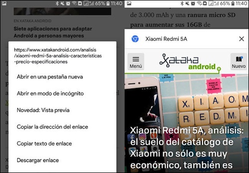 "Los enlaces los carga el diablo, y todavía más en el móvil. Mientras que en un PC puedes abrir enlaces en nuevas pestañas y cerrarlas en tiempo récord, en el móvil todo es más lento. ¿Te gustaría ver a dónde lleva un enlace antes de hacer clic? Con Google Chrome, podrás. La función se encuentra en pruebas y la puedes activar ya en Google Chrome Canary y Google Chrome Dev y recibe el nombre de Vista previa. En la práctica es algo así como mostrar a dónde lleva un enlace en una página web en una ventana flotante, y si no te gusta lo que ves, la cierras y aquí no ha pasado nada."