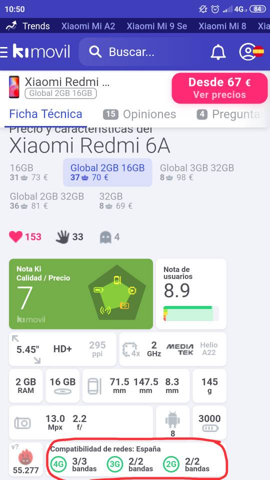 El Xiaomi mi8 se no tiene compatibilidad total con las redes españolas ,la gama redmi idem así que se lo que hablo....Si no revisa en Kimovil verá como es cierto.