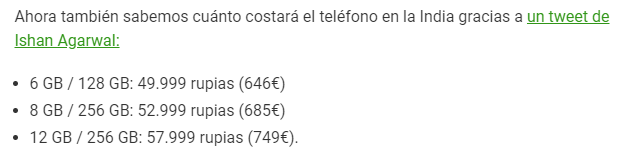 Si el modelo básico de 6/128gb cuesta en la india al cambio 646€ a España esta versión llega mínimo 700€ o mas bien 750€ si comparamos precios de anteriores oneplus en al india y luego en España.