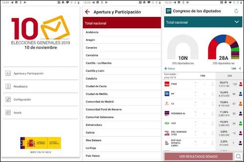 Sigue los resultados de las Elecciones Generales 10N en tu móvil ![]() Leemos en proandroid.com "Aunque es domingo y el recuento comienza entrada la noche, no todo el mundo puede o quiere estar pegado al televisor para ver los resultados. El móvil es la mejor opción para ir echando un vistazo cada poco tiempo y ver cómo se sitúan los diferentes partidos. Pero no solo podrás ver el resultado general, sino que podrás filtrar por comunidades autónomas y conocer muchos más datos interesantes. El Ministerio del Interior ha vuelto a publicar una aplicación para seguir las elecciones. No ha actualizado la del 28A, sino que ha creado una nueva. No debes equivocarte a la hora de buscarla en Google Play o en la tienda de IOS. La nueva aplicación todavía no se ha posicionado correctamente y probablemente aparezca primero la anterior destinada a las elecciones del 28A." fuente: proandroid.com |