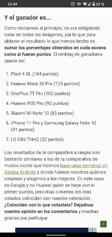 Por cierto muy buena la comparativa a ciegas! Es lo mejor, la gente vota sin fánbòyïsmos ! Sin duda el Pixel 4 XL es el móvil con la mejor fotografía nocturna.