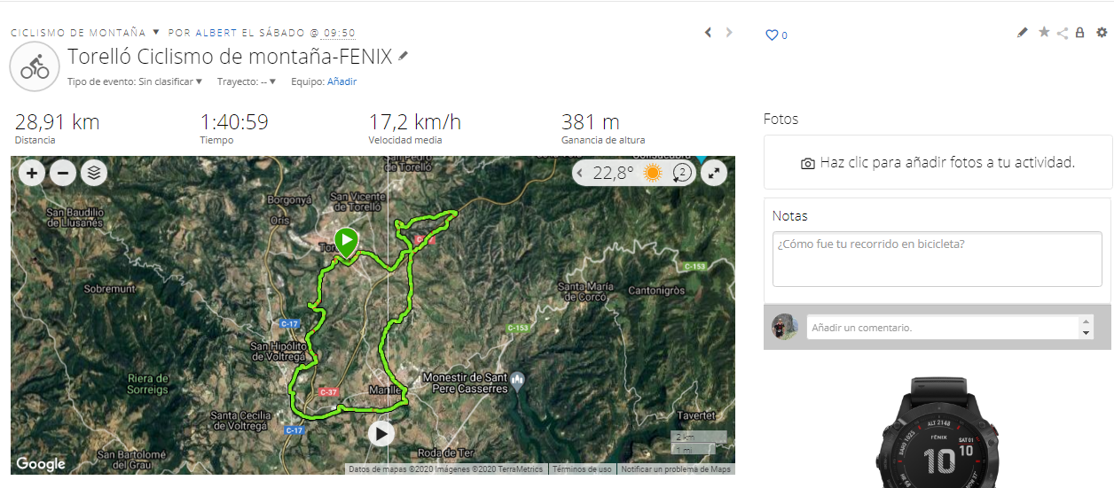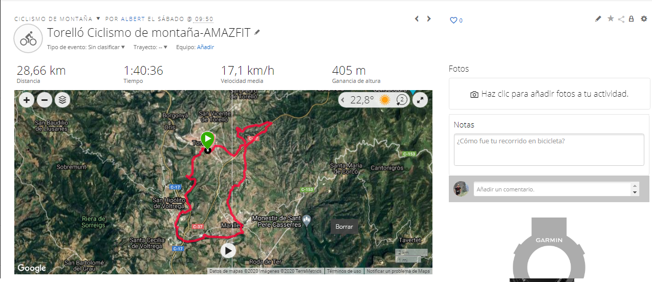 En defensa del Amazfit comentar que es el peor uso que puedes darle a un sensor óptico. Al hacer BTT, con los movimientos, saltos y vibraciones típicos de este uso pierde mucha precisión. Quizás un día me anime a comprarlos corriendo y usando solo el sensor óptico en los dos. A ver cómo va.