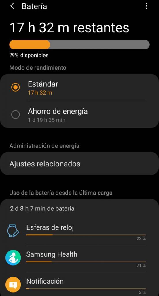 El consumo real es día y medio con todo activo, aod, y ritmo cardíaco cada 10 minutos. Yo lo desconecto del cargador a las 6am, y lo pongo a cargar a las 12 am con un 30-45%, depende si haya hecho ejercicio en interior o exterior. El consumo que me da es similar al de @Teknofilo (por cierto una review excelente, como siempre). ![]() No tengo más que decirte... |