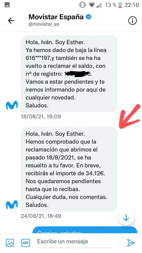 Y sobre lo de reclamar en tiendas Movistar lo desconozco pero supongo que será igual que hacerlo de forma digital porque al fin y al cabo ellos lo que van a hacer es abrir una reclamación y la respuesta va a depender de la central no de ellos.