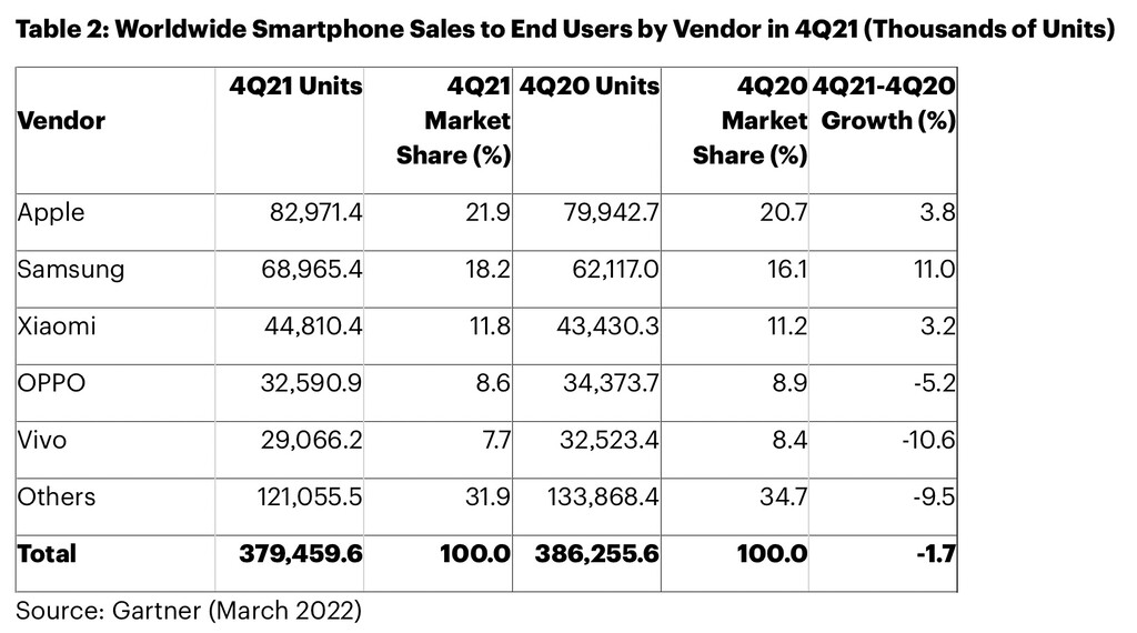 La novedad es que Apple creció solo un 3.8% mientras Samsung creció un 11% (seguramente por los Fold) mientras Oppo y Vivo se han desplomado. Hay algún motivo para esto? En 2021 la economía ha estado mucho mejor que el 2020 y ambos sacan buenos smartphones.