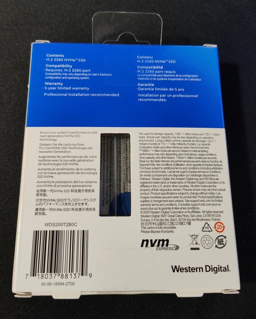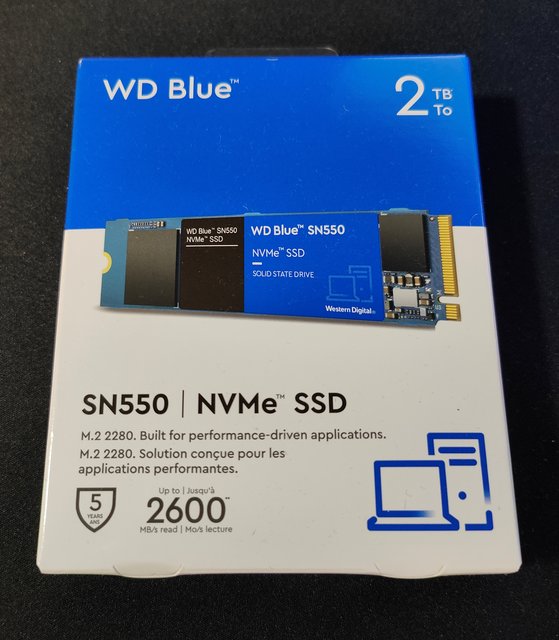 El SSD Western Digital es el modelo Blue SN550 de 2TB M.2 NVME