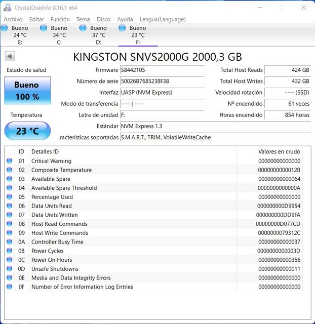 El SSD Kingston es el modelo NV1 de 2TB M.2 NVME.