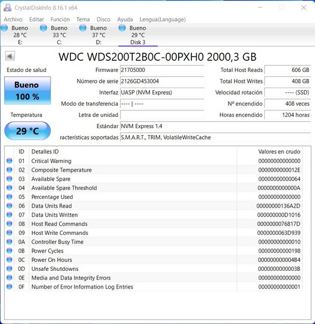 * Modelo: Kingston NV1, Western Digital Blue SN550, Sabrent