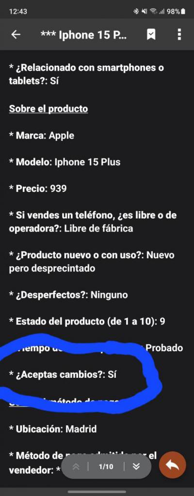 * Estado del producto (de 1 a 10): 9