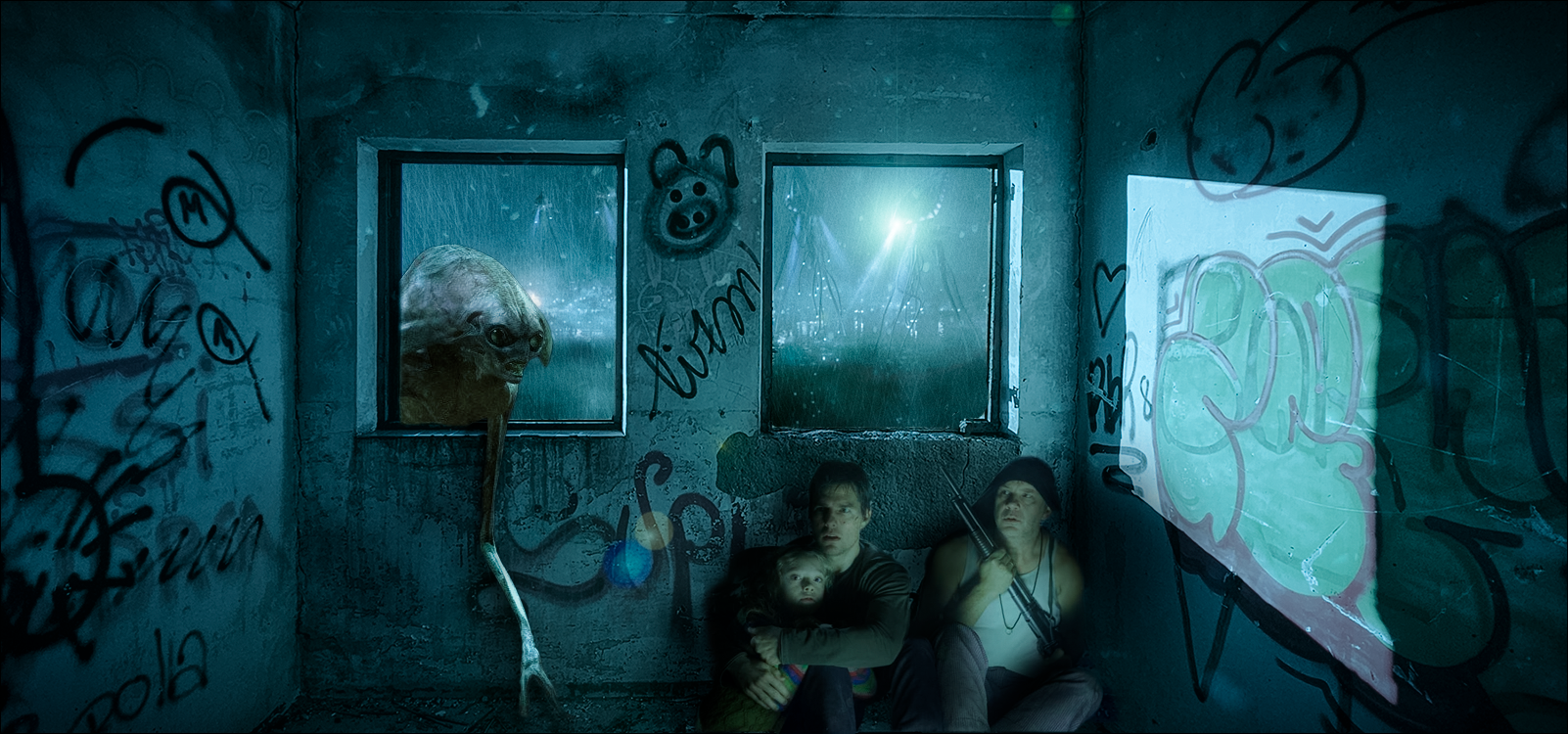 La he editado para darle un estilo anime cambiando lo que se ve por la ventana y dibujando a un padre y una hija protegiéndose de un bombardeo, que por desgracia es un tema de actualidad.