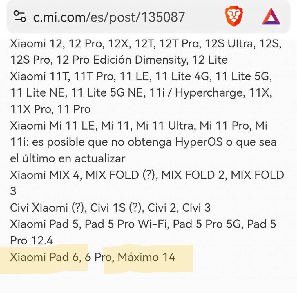 La pregunta la realicé yo ... ¿Xiaomi ha dicho oficialmente que la pad 6 no recibirá android 15?