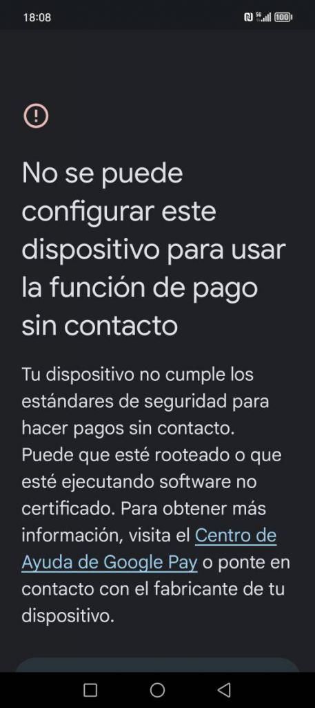 Mi opinión es que como play store dice que el dispositivo no está certificado, no me deja usarla. Lo curioso es que he probado con la app pay de uno de los bancos que tengo y he podido pagar correctamente... El problema es que cambiar de tarjeta es engorroso, y si quiero cambiar de banco, imposible, claro.
