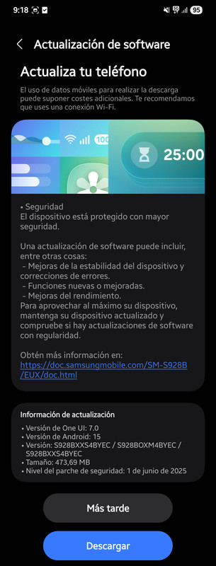 Disponible parche Seguridad mes de Junio, versión libre de España, poco más de 473mb