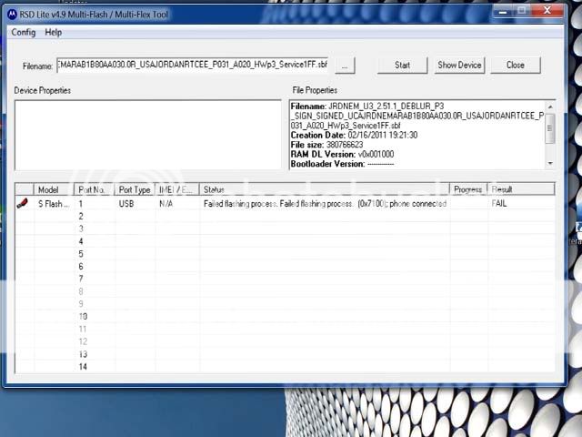 )Al lío: Siguiendo el tuto que teneis aqui, hago todo lo que se dice,pero cuando arranco el tlf en modo boot loader y el RDs Lite me lo pone "conected" en el puerto 1, pulso Start y me falla el flasheo al instante. Flash Failed (0x7100);phone conected Ya he probado con modo depuracion usb on/off, he reiniciado varias veces el tlf y pc y sigo en las mismas ... ![]() Alguna idea please?? EDITO: estoy tratando de flashear con el firm que sale en el mismo tuto Eclair 2.51.1 http://www.multiupload.com/66LD5C2K61 (Gracias xolxelmen)