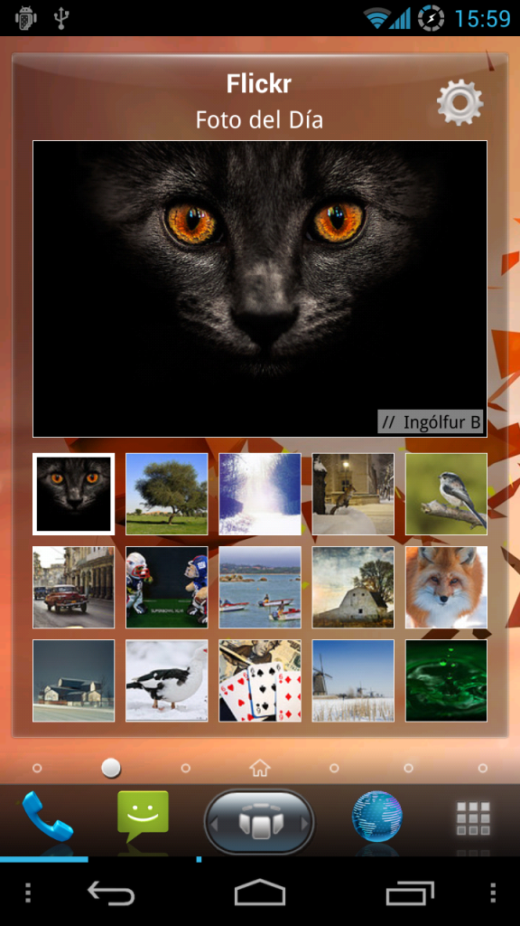 He instalado el launcher "SPB Mobile Shell 3D" y en uno de los escritorios hay un widget guapísimo de flickr...