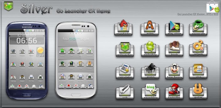 Descripción: Es el tema de Plata Ir lanzador imagen Es el tema lanzador Go Plata - 235 Silver diferentes iconos - 4 fondos de pantalla principal - 4 fondos de pantalla de aplicaciones del cajón - 2 fondos de pantalla del muelle - Reloj de widjet (no se incluye el tema) -------------------------------------- ※ Cómo utilizar la piel DIGI reloj ※ 1.Google tienda a la instalación gratuita del reloj DIGI 2.Toque y mantener Desktop-widget-DIGI Clock Widget 1 × 4 (gran angular) 3.Toque y Short DIGI DIGI-reloj Ajustes del reloj (Fecha de Inicio de posición, de abajo ajustes) 4.Background configuración-Elija el fondo 5.http :/ / lanzador de ir blog.naver.com/seungjo69-multi -Los archivos adjuntos tema abajo 6.El carpeta Save Skin Clock aplicación -------------------------------------------- Cómo utilizar ... 1. Buscar "Ir EX lanzador" y descargar e instalar 2. Instale este tema 3. Ejecutar Ir EX laucher 4. Menú> Preferencias> Preferencias> Tema elige un tema de este ![]()