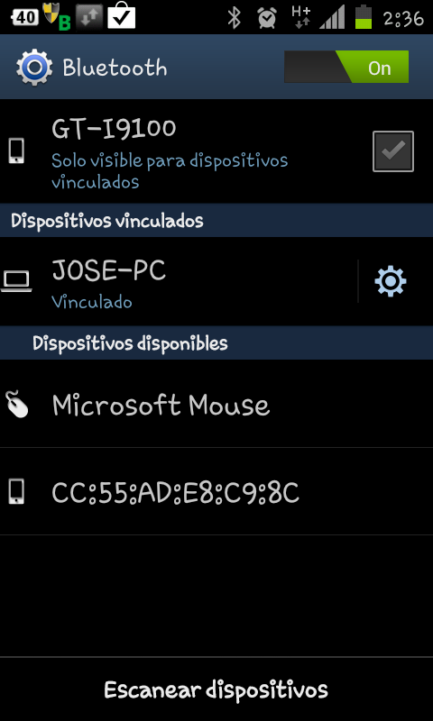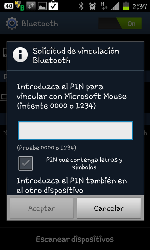 a veces se pone cabezon y no se deja ,pero apagando el raton y volviendolo a encender al final se ha emparejado. el tema del raton en mi caso es para conectar el movil a la tele con hdmi y ver peliculas sin tener que levantarte del sofa. el boton atras no va ,pero existe la aplicacion button savior que te crea una tecla virtual de la funcion retroceder ,que es lo que falla en el raton. ![]() Enviado desde mi Samsung Galaxy II |