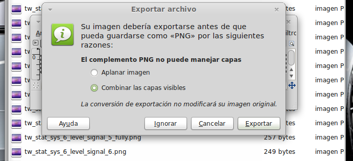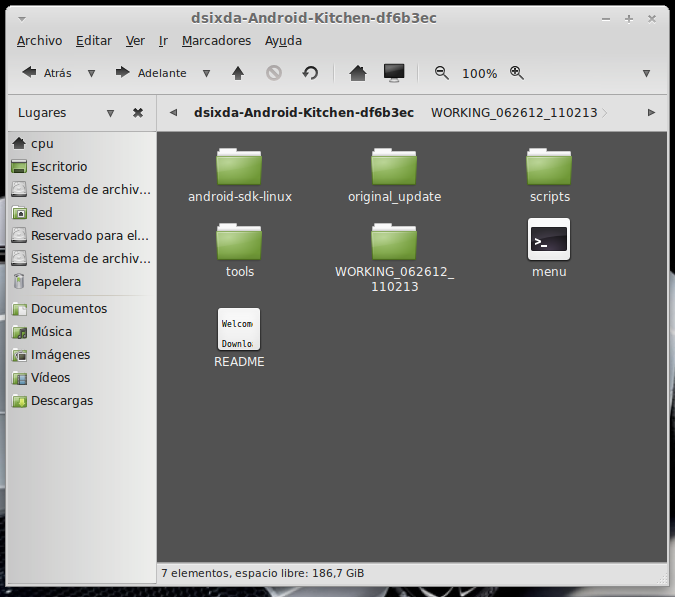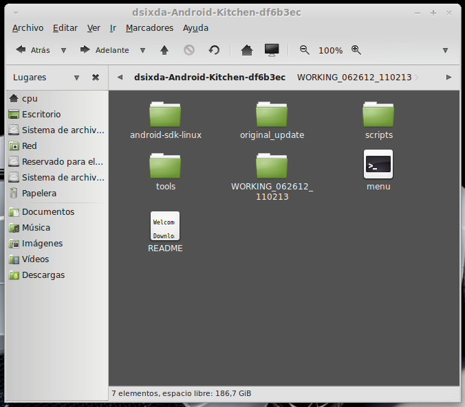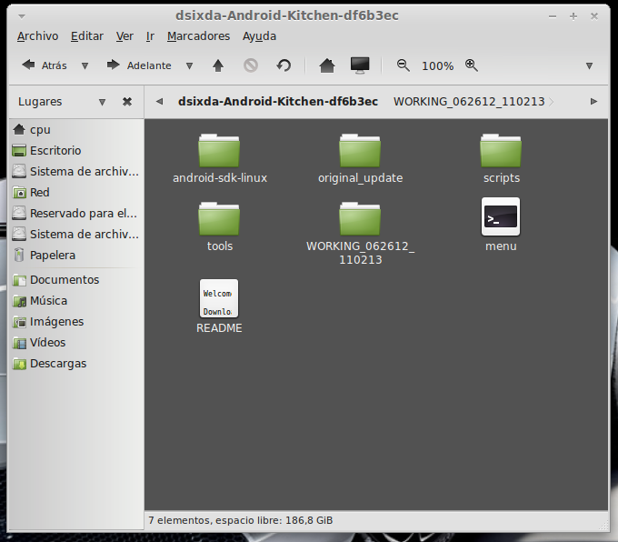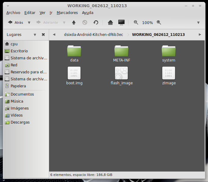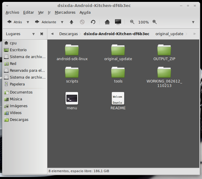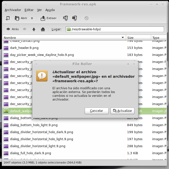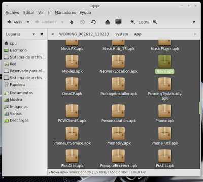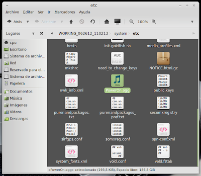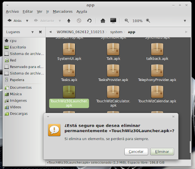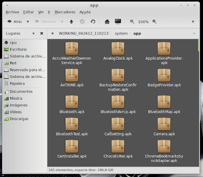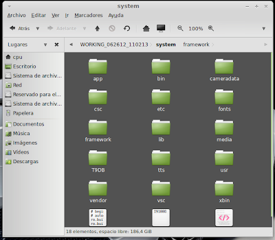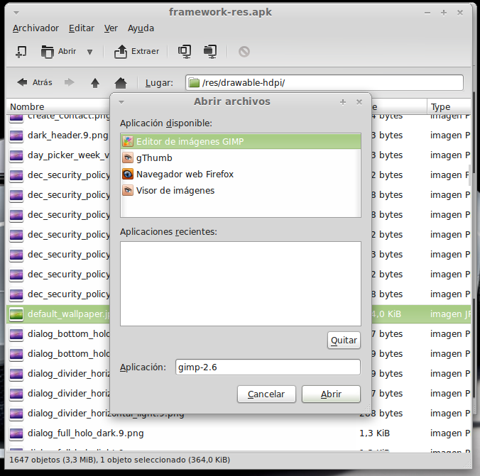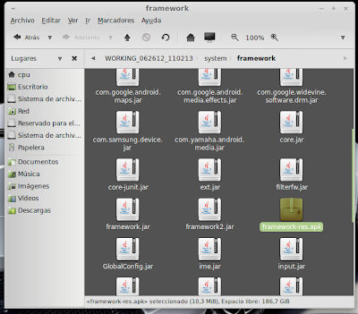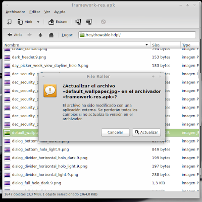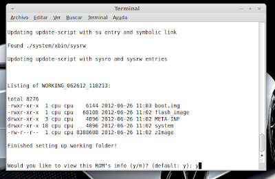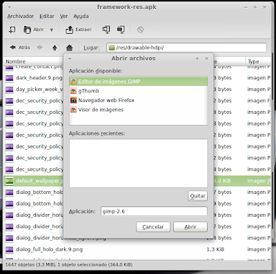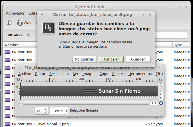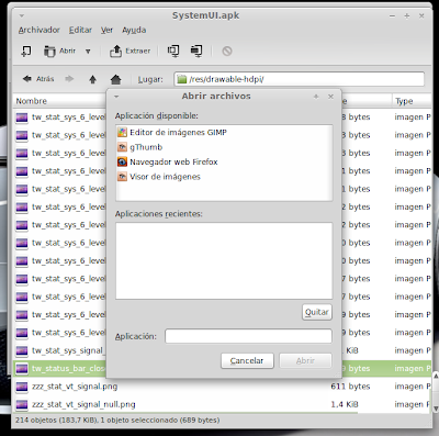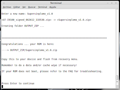 ...Continuación -Cambiar fondo de pantalla por defecto: Un cambio sutil pero efectivo, aunque podéis poner la imagen que queráis. Como siempre abrimos El WORKING_062612 Vamos a system Vamos a framework Abrimos framework-res.apk (se abrirá como si fuera un zip) Accedemos a la carpeta "res" drawable-hdpi Botón derecho sobre default_wallpaper.jpg Abrimos con el editor de imágenes GIMP Menú Colores y click en colorear (el 4º por debajo de la lista desplegable, no el 3º por arriba) Selecionamos blanco o el color que queráis y aceptar Cerramos gimp Claro, le damos a guardar. Es un archivo jpg, le damos a guardar sin modificar nada Y nos pregunta si queremos actualizar lo modificado y le decimos que sí, actualizar. -Personalizar algún icono: Los archivos .png no tienen ningún secreto, pero los 9.png sí. En esos no modifiquéis tamaños si no queréis complicaciones. WORKING_062612 Carpeta system Abrimos app Abrimos SystemUI.apk (se abre tipo zip) Directorio RES Drawable-hdpi Vamos a modificar el cierre del status-bar con nuestro nombre. Botón derecho sobre tw_status_bar_close_on.9.png, abrir con: Seleccionamos Editor de imágenes de GIMP Herramientas, selecionamos texto y escribimos nuestro nombre Cerramos dándole a guardar Como quizá hemos creado capas le damos a Exportar Y, como ya sabemos, actualizamos el ZIP -Os adjunto una carpeta con iconos que yo he personalizado. Son de libre utilización. ![]() Link de descarga iconos: carpeta iconos (sevidor Mediafire) Un consejo. Trabajar en modo RGB cuando el icono este indexado. Para cambiar de un modo al otro, dentro de Gimp seleccionamos el menú Imagen - Modo - RGB. Como ya dije: editar - guardar - firmar. Vamos a firmar: "0" para ir a opciones avanzadas y pulsamos Enter. Opción 22 y Enter Opción "a" y Enter ¿Firmar todas las Apks, incluso en data/app? pulsamos "y" y Enter. (está firmando de manera automática) Acabó. Enter para continuar. "x" para salir del gestor de firmas. Y "0" para volver al menú principal -Llegados a este punto solo nos falta un par de clicks y tendremos nuestra propia Rom cocinada al estilo del chef. Nos falta seleccionar los wipes y construir la Rom. -Vamos con los wipes: Seleccionamos la opción 7 y Enter para continuar ¿Queremos que haga wipes? Yo le doy a SÍ, independientemente de que los realicen desde el menú recovery antes de instalar la ROM. Por lo tanto "y" y Enter para continuar Vale, ya está cambiado, pulsa Enter para volver al menú principal. -Y ya, por fin, el paso definitivo: Construir la ROM. Seleccionamos 99 y Enter para continuar. Elegimos la opción 1. Enter para continuar. ¿Queremos zipaligning? SI! "y" y Enter para continuar (Zip aliniando y creando ZIP) Pulsamos "y" y Enter para seguir. Nos recomienda firmar y le hacemos caso. "y" y Enter para seguir. ¿Cambiamos nombre? ¡Sí! "y" y Enter para continuar. Escribimos el nombre, pulsamos Enter para confirmarlo y Enter de nuevo para continuar Finalmente pulsamos "x" para cerrar la cocina (gracias http://www.xda-developers.com) Se nos crea una nueva carpeta en nuestra cocina, se llama OUTPUT_ZIP Dentro de OUTPUT_ZIP esta nuestra ROM en formato ZIP. Se tiene que copiar tal cual a la carpeta que más te guste dentro de tu móvil, vía usb. Paciencia tarda unos minutos. A continuación la puedes instalar desde Recovery. Custom Roms SuperSinplomo por Victor Sin Plomo se encuentra bajo una LicenciaCreative Commons Reconocimiento-NoComercial-CompartirIgual 3.0 Unported.