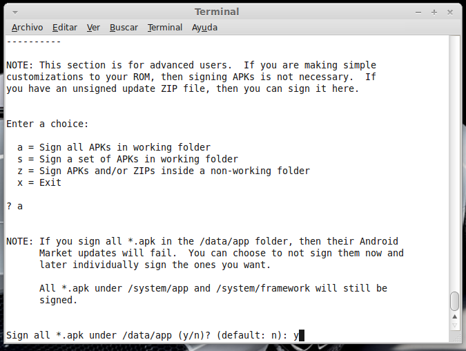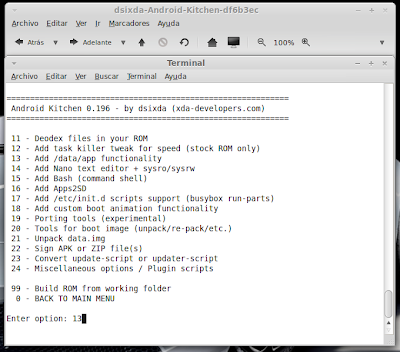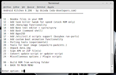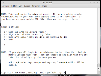 Crea tu ROM (para galaxy s2) En esta guía vamos a crear nuestra propia ROM para nuestro móvil. En concreto, para el Galaxy s2. Necesitamos: Ordenador con Linux, yo recomiendo Linux Mint o Ubuntu (yo uso Linux Mint) http://www.linuxmint.com/release.php?id=16 -Podéis instalarlo en una partición del disco duro y tener un DualBoot en el ordenador entre Windows y Linux (es muy sencillo y hay miles de tutoriales). Palabras clave: Dual boot, linux y windows, grub... Teléfono Galaxy S2 Rooteado, preferiblemente partiendo de una Rom Stock, para que el trabajo sea casi 100 x 100 vuestro. Podéis ver mis guías: -stock rom -rootear samsung galaxy s2 -instalar custom roms para samsung Empezamos: En el Galaxy S2, abrimos la aplicación CWM Manager, creamos un backup y le ponemos un nombre claro y reconocible. El teléfono se reiniciará en modo recovery y el proceso se realiza automáticamente. Cuando se reinicie enviamos, vía usb, la carpeta del mismo nombre que está dentro de clockworkmod/backup/ ((los archivos dentro son data.ext, system.ext, cache.ext, boot.img...)) A partir de ahora todo se realizará en el ordenador: Como ya dije, utilizo Linux Mint. -Abrimos el Gestor de Software y buscamos "java". Instalamos sun-java6-jre,sun-java6-plugin, openjdk-6-jre ![]() A continuación descargamos la cocina de rom de XDA: https://github.com/dsixda/Android-Ki...rchives/master pulsamos en Download.tar.gz. Sobre el archivo descargado, botón derecho del mouse y extraer aquí. Podéis renombrar el archivo dsixda-Android-Kitchen-0.196-1-g3d78ceb a cocina Rom o algo así. Dentro de la carpeta hay más carpetas y un ejecutable: (original_update, scripts, tools, menu y Readme). Ahora la clave consiste en copiar el backup que hicimos en el móvil dentro de la carpeta original_update. (ojo, no copiéis la carpeta dentro de original_update, sino el contenido de la carpeta). Botón derecho sobre Menu y click en abrir y luego en ejecutar en un terminal. Pulsamos opción 1 (set up working folder from ROM) y Enter para seleccionar. Pulsamos Enter para continuar. Seleccionamos system.ext4.tar and boot.img ((opción 2 y Enter para continuar)) Cambiar nombre del working folder yo selecciono "n" y Enter para continuar. Añadir boot.img, seleccionamos "y" y Enter para continuar. ¿Queremos ver la info de nuestra Rom? "y" y Enter para continuar. Enter para volver al menú principal Los cambios que haremos en nuestra Rom serán: -Cambiar el nombre -Añadir Bootanimation y su sonido -Añadir aplicaciones de Inicio y quitar otras que no queramos -Cambiar fondo de pantalla por defecto -Personalizar algún icono -Cambiar el nombre: Seleccionamos opción 8 y Enter para continuar. ¿Queremos cambiar el nombre? "y" y Enter para continuar. Escribimos el nuevo nombre y Enter para continuar. Nos confirma que ha sido modificado, Enter para continuar. Vamos a ver si realmente lo ha modificado, seleccionamos opción 10 y Enter para continuar. Pulsamos Enter para volver al menú principal. -Añadir Bootanimation y su sonido: Yo he elegido esta, con su sonido de inicio custom y todo. ![]() -Descargamos Animación Sonic 1.zip (servidor MediaFire) Dentro del zip hay 3 archivos bootanimation.zip y PowerOn.ogg. El archivo instrucciones ni caso. Seleccionamos la opción "0" y Enter para ir a opciones avanzadas. Seleccionamos la opción "18" y Enter para continuar. Pulsamos "y" y Enter para continuar. Nos dice que se a creado la carpeta local, Enter para continuar. Dentro de la carpeta de nuestra cocina, seleccionamos WORKING_062612...lo que sea. Entramos dentro de la carpeta data Abrimos la carpeta local. Y pegamos el archivo bootanimation.zip dentro ((WORKING_062612.../data/local/)) -Ahora añadiremos el sonido personalizado del bootanimation. Volvemos a abrir la carpeta WORKING_062612... Entramos en la carpeta etc. Dentro de la carpeta etc pegamos (remplazamos) el archivo PowerON.ogg La ruta del PowerON.ogg es WORKING_062612.../system/etc -Añadir aplicaciones de Inicio y quitar otras que no queramos: Aquí hay que remarcar dos cosas importantes. La primera, ¡OJO!, ¡mucho OJO! con lo que quitamos y ¡mucho OJO! con añadir aplicaciones de pago sin el consentimiento del autor. Yo decido añadir el ES Explorer y El Nova Launcher, la versión free y quito el launcher de serie. Hay dos maneras de añadir aplicaciones: dentro de system/app y dentro de local/data/app. Todo lo que esté dentro de local/data/app se borra con los wipes, se desinstala fácilmente y se puede actualizar desde el market (Play Store). Todo lo que se añada a system/app solo se podrá borrar desde un gestor de archivos, como pasa con las dichosas apps que añaden las compañias telefonicas y los samsung hub. Vamos allá: Seleccionamos la opción "0" y Enter para continuar. Seleccionamos la opción 13, añadir data/app y Enter para continuar Pulsamos "y" y Enter para continuar. Nos confirma que se ha creado la carpeta /data/app. Enter para continuar. En nuestra cocina, abrimos WORKING_062612... Abrimos data Abrimos app Y pegamos la aplicacion que queramos. En mi caso el ES Explorer: -Es Explorer.apk (servidor Mediafire.com) -Ahora vamos a substituir el launcher de serie por el nova launcher. Partimos como siempre de nuestra cocina en la carpeta WORKING_062612... Abrimos system Abrimos app Borramos TouchWiz30Launcher (el launcher de origen) Si lo borramos Y pegamos el Nova Launcher: -nova.apk (servidor Mediafire.com) Los siguientes paso son los de edición gráfica. No son ni más fáciles ni más difíciles. Solo tienen una clave: editar - guardar - firmar. Yo siempre los firmo para evitar problemas. -Vamos al gestor de software y nos descargamos Gimp (es un editor gŕafico). Practicar un poco con Gimp creando vuestras propias imágenes. Ya veréis que es muy fácil de utilizar. No obstante, intentaré que las capturas de pantalla sean claras. continua... Última edición por supersinplomo Día 26/06/12 a las 16:33:26. |