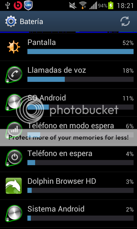 No creo que ningun launcher aparezca en la lista esa por mucho gasto que tenga, el gasto es minimo en comparacion con el otro software y apps. Esta muy bien 1 dia y 10 horas, ami sin embargo me ha durado mucho mas tiempo con la energy v5 y el apolo de pedreste. Ahora mismo no t puedo poner capturas porque stoi con la 4.1 y es otro mundo, tb chupa que no veas. El go consume mas ram que otros launcher sino haz la prueba.