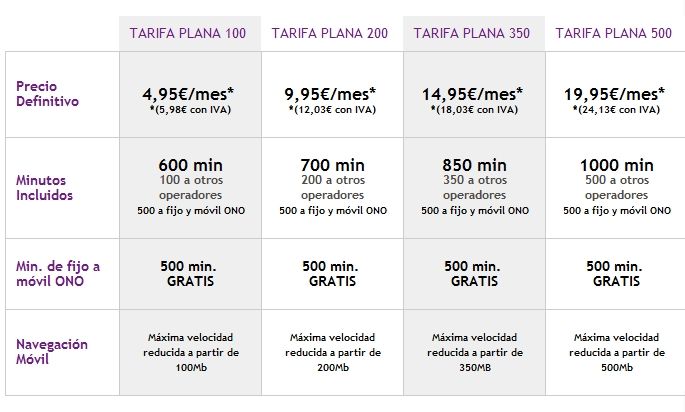Yo también soy de ONO y un detalle importante cuando elijas tarifa (está en la web pero no tengo ganas de buscar el pantallazo con lo lenta que es su página XD)