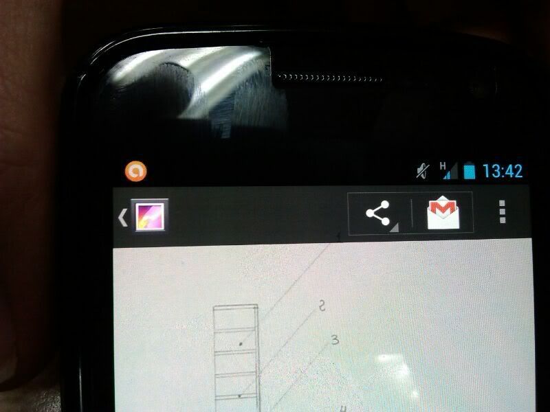 Si os dais cuenta, en la segunda foto.....JUSTO debajo del numero 1, esta la linea horizontal que cambia el tono de color. Desde mi PC se nota y es perceptible . Espero que lo podais ver para darme vuestra opinion ;).REPITO que no hablo de la barra de tareas (la que deslizas el dedo hacia abajo para que salga y esas cosas.....) Hablo de cuando se quita la barra de acceso para enviar por gmail (en la primera foto) en la galeria con una imagen ;). |