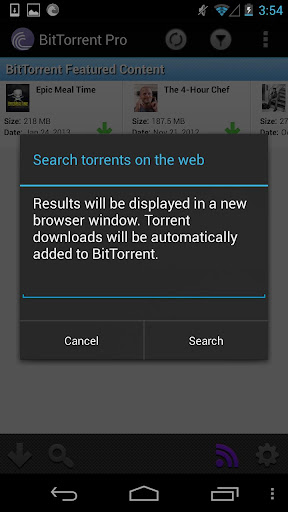 Resumen: Encontrar torrentes y descargarlos directamente a su teléfono o tableta, sin publicidad, con el oficial de BitTorrent ® Pro App para Android. Actualizar a la versión sin publicidad del BitTorrent ® app, de los inventores del protocolo BitTorrent y los desarrolladores de la aplicación torrente # 1 en la tienda * Google Play y el cliente de bittorrent # 1 en los escritorios de todo el mundo. ** Sabemos que te encanta medios de comunicación - y que usted no quiere estar atado a su escritorio para disfrutarlo. Hemos creado este práctico Android App torrent para ayudarle a obtener los medios de comunicación, en cualquier lugar. Y, dado que esta edición de la aplicación BitTorrent Android es nuevo a la tienda de Google Play, puede actualizar a Pro BitTorrent a un precio especial de lanzamiento. Incluido en la aplicación Pro: ✔ No hay anuncios de banner ✔ precios de introducción ✔ Todas las actualizaciones futuras, incluidas las funciones de Pro son GRATIS ✔ Apoyo personal a nuestros desarrolladores a [email protected]. Si no podemos obtener la aplicación para trabajar para usted, le devolvemos su dinero Las características estándar: ✔ Velocidad sin límites de tamaño o ✔ Wifi en modo de sólo ahora disponible ✔ Búsqueda de contenido ✔ Acceso a contenido exclusivo de artistas destacados de BitTorrent ✔ descargar torrents ✔ gestionar las descargas torrent ✔ Reproducción de medios ✔ medios personales Share ✔ Suscribirse a feeds RSS ✔ Haga que su dispositivo Android mucho más divertido ![]()