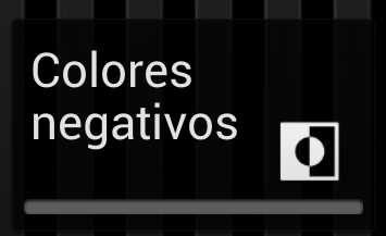 Ayer trasteando con el S3 de mi novia descubrí un Widget que se llama "colores negativos", que lo que hace es invertir los colores de la pantalla y crearnos una especie de negativo de todo lo que veamos. Esto es util si por ejemplo nos molesta leer una web con letra negra sobre fondo blanco, y preferimos leerla en letra blanca sobre fondo negro (creo que además se ahorraria bateria, corregidme si me equivoco). Pues bien, me he puesto a buscar ese Widget en mi Note 2 (que en el S3 viene por defecto), y no aparece. Si bien es cierto que la opcion la tenemos en ajustes->accesibilidad->invertir colores, me gustaria tener un acceso directo a esa opción, ya que para ciertos momentos viene muy bien (y porqué no decirlo, también le da un toque distinto con esos colores XD). ![]() He buscado el widget en Samsung Apps y en la Play Store y nada, ni rastro, y como acceso directo lo maximo que podria hacer seria crear un acceso directo a los ajustes de accesibilidad, pero no directamente al de invertir colores. Alguna solución o app? Como es que lo trae el S3 y el Note 2 no? Gracias y saludos!