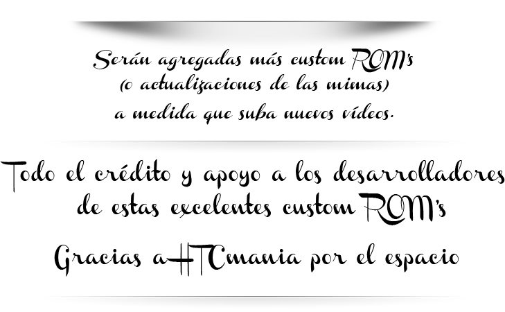 Estaria bien que dijeras con cual de todas ellas que vas probando te quedarias y que mods, kernels has metido en alguna de ellas en el caso que asi lo hayas hecho. Al igual que di en el caso de por ejemplo no funcionar algo en alguna ROM digas como lo has "solucionado" o algo asi.