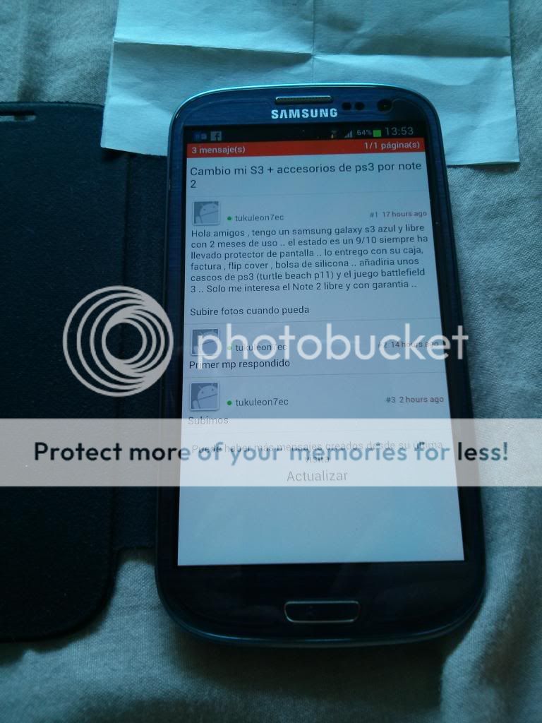 ... tengo un samsung galaxy s3 azul y libre con 3 meses de uso .. el estado es un 9/10 siempre ha llevado protector de pantalla .. lo entrego con su caja, factura , flip cover , bolsa de silicona .. Me interesa principalmente moviles de la misma gama Si es un iPhone 4s , que sea libre , tenga garantia y accesorios! Para trato en mano en Barcelona , ya que no tengo otro movil Fotos del Movil ![]() ![]() ![]() ![]() ![]() ![]() ![]()