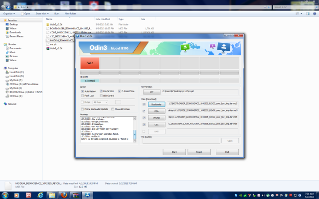 Mira lo que estoy tratando de hacer es reparticionar el dispositivo, porque he leído en varios tutos que hay que hacer una nueva particion para que el odin tenga donde guardar los archivos, ya que por eso es que se queda muerto para al final decir que la operación falló. Para eso se utiliza el archivo pit y con la casilla Re-Partition marcada.