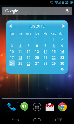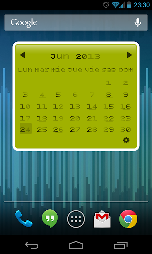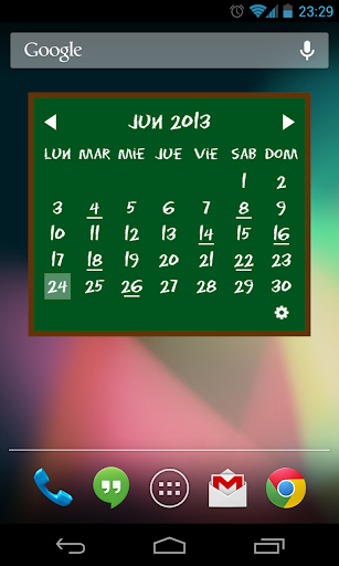 Hacía tiempo que quería tener en la pantalla de inicio de mi Android un calendario mensual, que sincronice con mi calendario de Google, y que pueda personalizar su aspecto a mi gusto. Así que hace unos meses comencé con el diseño y desarrollo del mismo, y aquí está el resultado.