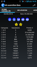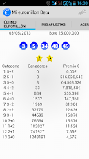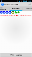 Si juegas a Euromillones esta es tu aplicación, podrás añadir tus apuestas y cuando se realice el sorteo, automáticamente, te avisará del premio que has obtenido mediante una notificación, así de sencillo y útil. Entérate de si eres millonario o no unos minutos después de que se halla realizado el sorteo!!