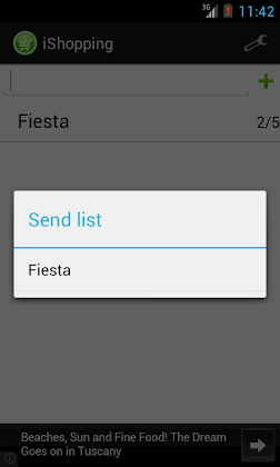 Acelera tus compras y te permite ahorrar tiempo. La presentación es simple e intuitiva y muy liguera, su tamaño no supera de 1 Mb. Y la primera aplicación de compras que puede enviar la lista por chats ( Whatsapp, Line...) CARACTERISTICAS PRINCIPALES • BASE DE DATOS DE ARTICULOS CON PRECIO: Genera tu propia base de datos de articulos, de una forma sencilla y practica. Y añadeles el precio que tiene en ese momento para saber por cuanto te saldra la compra aproximadamente. • LISTAS MÚLTIPLES: Crea múltiples listas • ENVIAR LISTA DE LA COMPRA: Envía la lista de la compra por EMAIL, SMS, WHATSAPP, LINE la limitación del envio la pones tu. https://play.google.com/store/apps/d...=com.ishopping Imagenes Espero que os guste Todo comentario es bien recibido.