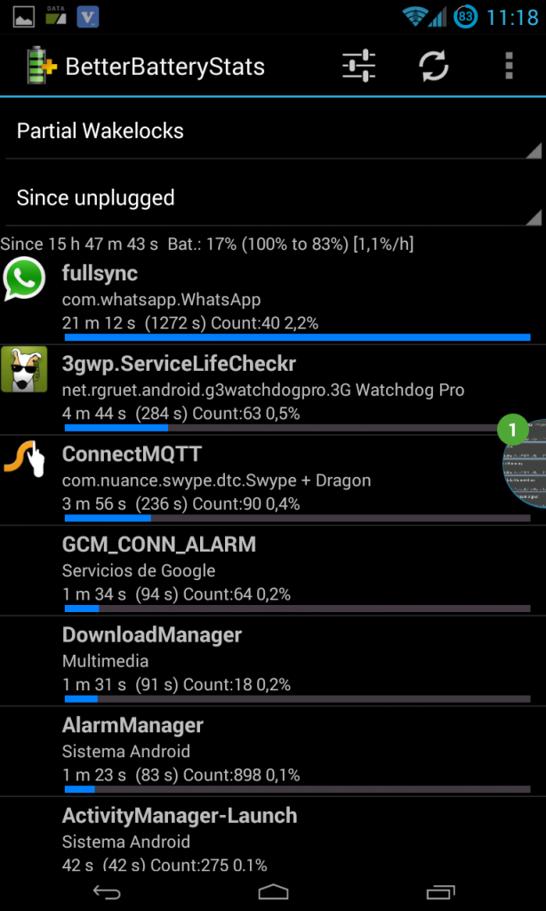 no se si reinstalar esas aplicaciones que pone wakelocks a ver si se van o que.Aun asi no siempre aparecen es decir a veces no veo ningun wakelock pero sigue drenandose la bateria eso que pone power.manager.service.wakelocks es normal? que wakelock es este?solo veo la ultima version.. por cierto el angela 2.8 va mejor que la ultima version? por eso la recomiendas? ![]() Prueba volviendo a 4.2.2, pasar a 4.3 y flashear todo de nuevo.