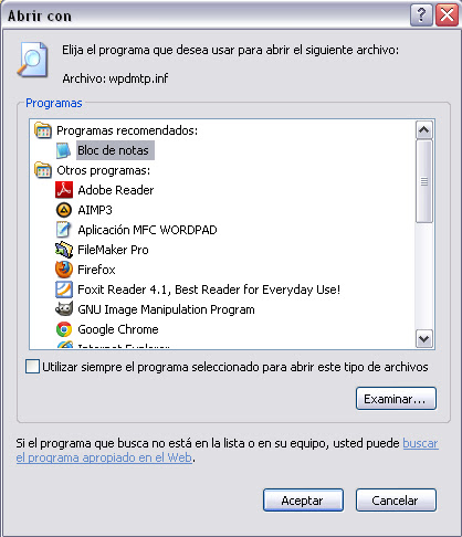 1.- Conectamos el Nexus 4 al ordenador. Dejar la opción como tipo de Archivos MTP. 2.- Vamos a Panel de Control --> Sistema --> pestaña Hardware --> Administrador de dispositivos 3.- Ahora pulsamos botón derecho en el dispositivo MTP y entramos a propiedades. 4.- En la ventana que se abre, entramos en la pestaña Detalles para ver la identificación de nuestro nexus. Como se muestra en la imagen, la parte que nos interesa es: USB\VID_18D1&PID_4EE2&MI_00 Copiamos dicha frase. Normalmente será esta misma para todos los Nexus 4. 5.- Desconectamos el Nexus y nos dirigimos a Mi PC y en disco duro local ingresamos en la carpeta WINDOWS. Es lo mismo que decir ir a la ruta C:\WINDOWS Aquí deberemos de activar la opción de ver carpetas y archivos ocultos. Esto se consigue en Herramientas --> Opciones de carpeta --> Pestaña Ver --> Marcar "Mostrar todos los archivos y carpetas ocultos" --> Aplicar y Aceptar Ahora podremos ver una carpeta dentro de la carpeta Windows llamada inf. (C:\WINDOWS\inf) 6.- Dentro de la misma buscamos el archivo wpdmtp.inf y pulsamos sobre el con el botón derecho y en Abrir con... Para selccionar el Bloc de notas y editarlo. Ahora se abrirá un documento como el siguiente, donde localizamos la zona y escribimos (copiamos y pegamos) lo siguiente: %GenericMTP.DeviceDesc%=MTP, USB\VID_18D1&PID_4EE2&MI_00La parte en roja debe de ser lo que nos pusiera en el paso 4 de este manual. Normalmente es esto mismo para todos los Nexus 4. Debería de quedar así 7.- Guardamos los cambios Archivo --> Guardar. 8.- Conectamos nuestro nexus. Ya debería de funcionar perfectamente y mostrarnos el asistente para instalar nuevo dispositivo. Si no saliera solo, podemos forzarlo a que funcione, vamos a Administrador de dispositivos (Como en el paso 2) para refrescar los dispositivos conectados. 9.- En la ventana para instalar nuevo dispositivo. Marcamos "No por el momento" y siguiente. Marcamos "Instalar automáticamente el software (Recomendado)" Ya veremos por fin nuestro Nexus 4 como cualquier dispositivo de almacenamiento extraíble MTP. Ademas la velocidad de copiado y lectura es MUY MUY rápida con este método al ser de un modo nativo de windows. Ésto viene de aqui: http://frikinux.blogspot.com.es/2013...p-como-si.html Probado por mi y va de maravilla,mucho más rapido en todos los aspectos. **Posible solución si no os funciona, borrar todo lo relacionado con tu nexus desde el administrador de dispositivos** Última edición por DavidEUS Día 15/11/13 a las 21:01:46. |