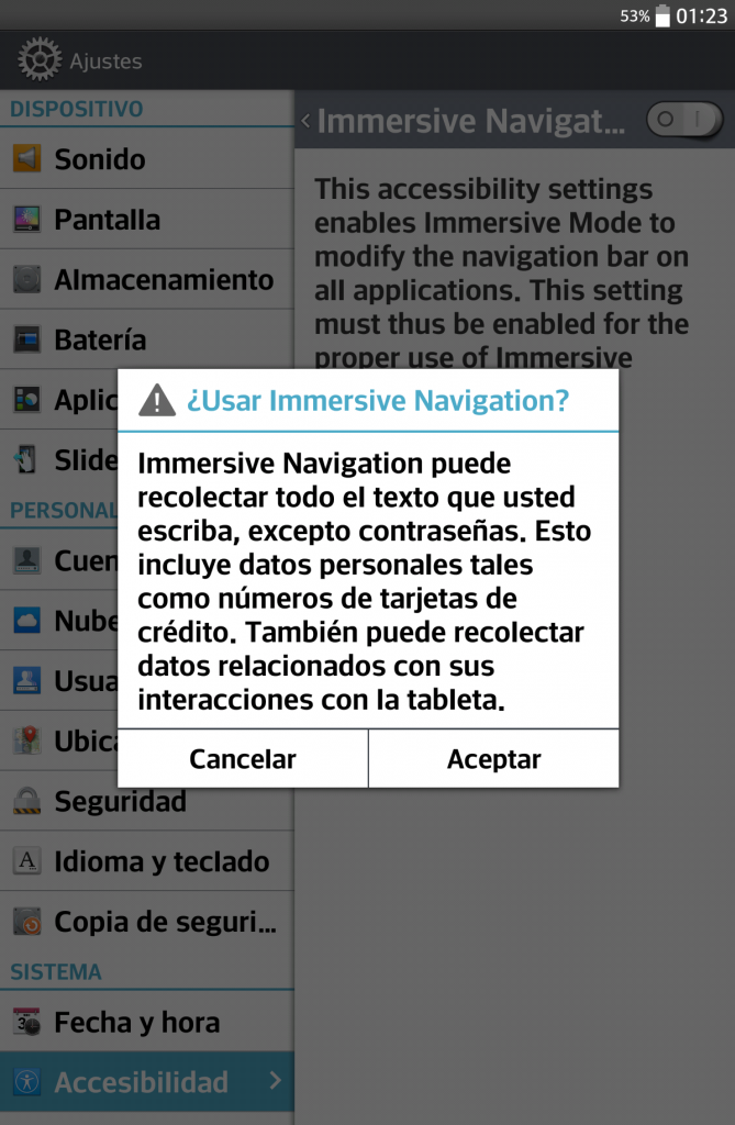 Lo he conseguido instalando otra version del immersive mode pero lo que no me gusta es el aviso que salta al instalarlo