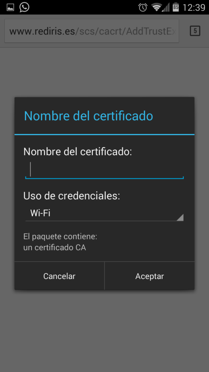 En certificados de confianza me aparecen varios de sistema pero de usuario no me aparece nada.