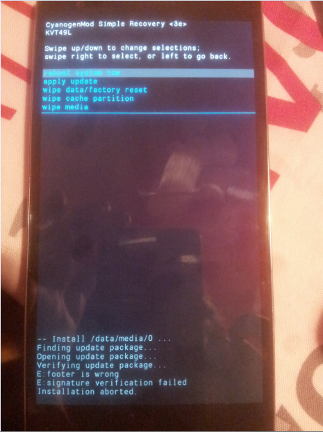 Como cambio el recovery? Una vez hecho el wipe data/factory reset, cuando le doy a apply update me da este error:
